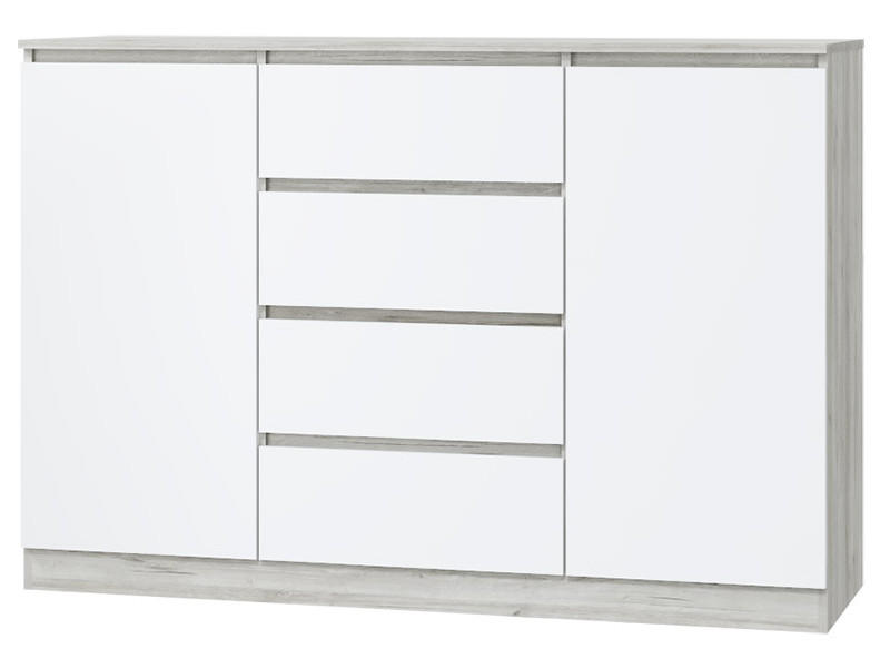 Комод 2 двери 4 ящика Лори дуб серый, белый