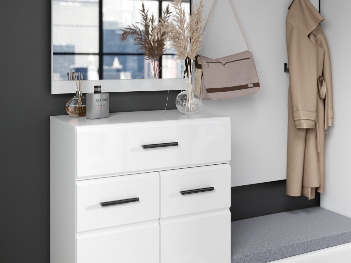- Отделение с распашными дверями укомплектовано вместительными полками для коробок с обувью или сумок.