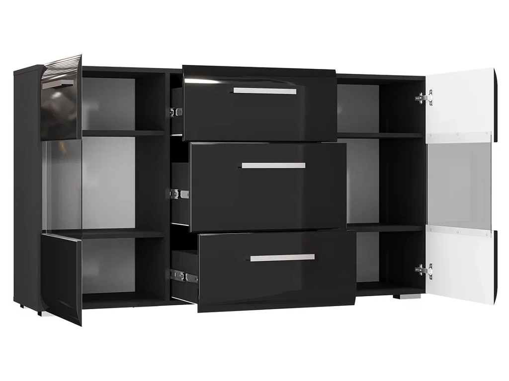 - Комод 3 ящика 2 двери со стеклом Домино черный