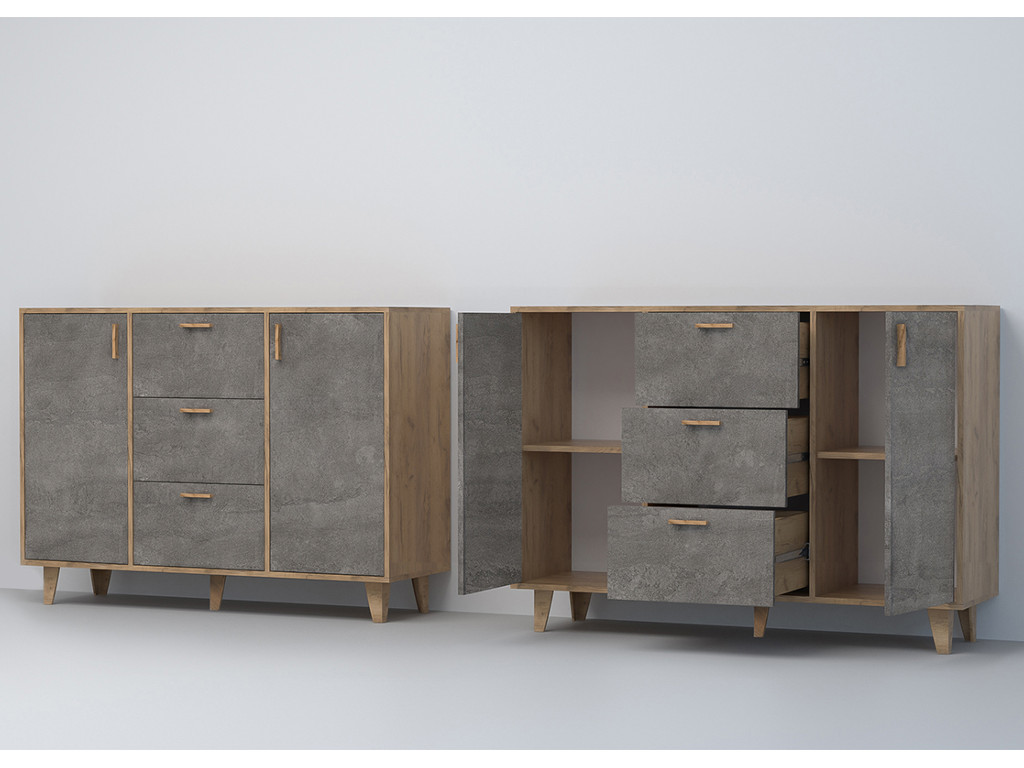 - Комод Эго К-2 2 ящика дуб крафт золотой/камень темный на ножках