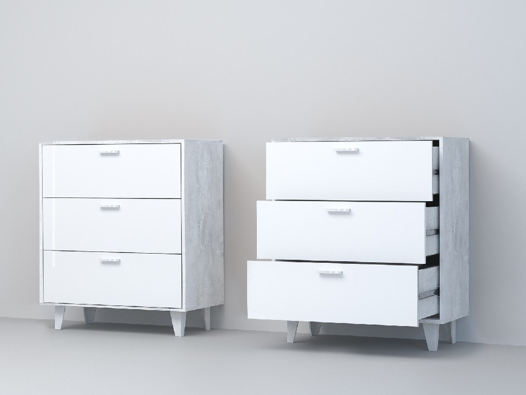 - Комод Эго К-3 3 ящика бетон светлый/белый глянец на ножках