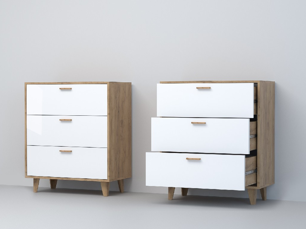 - Комод Эго К-3 3 ящика дуб крафт золотой/белый глянец на ножках