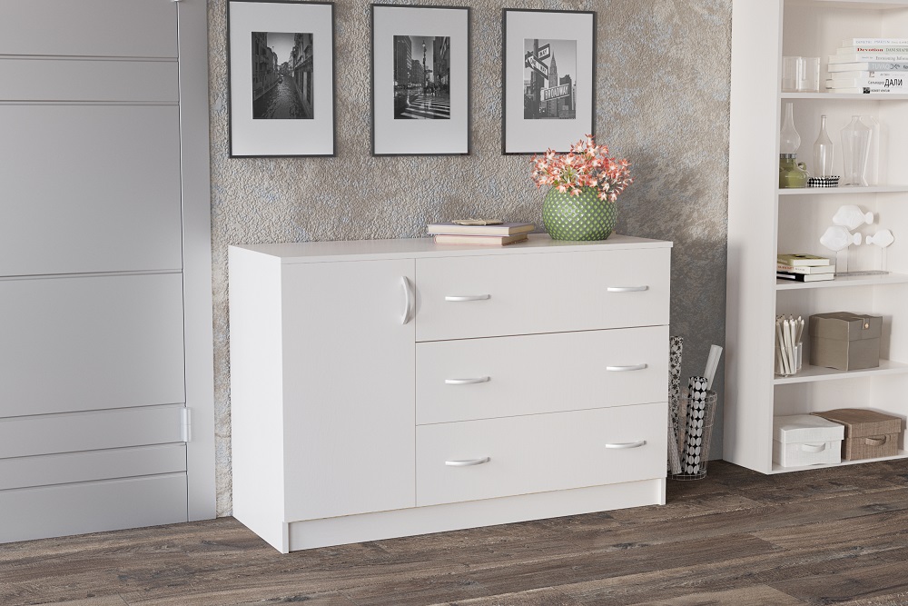 Комод Лофт 3 ящика 1 дверца белый