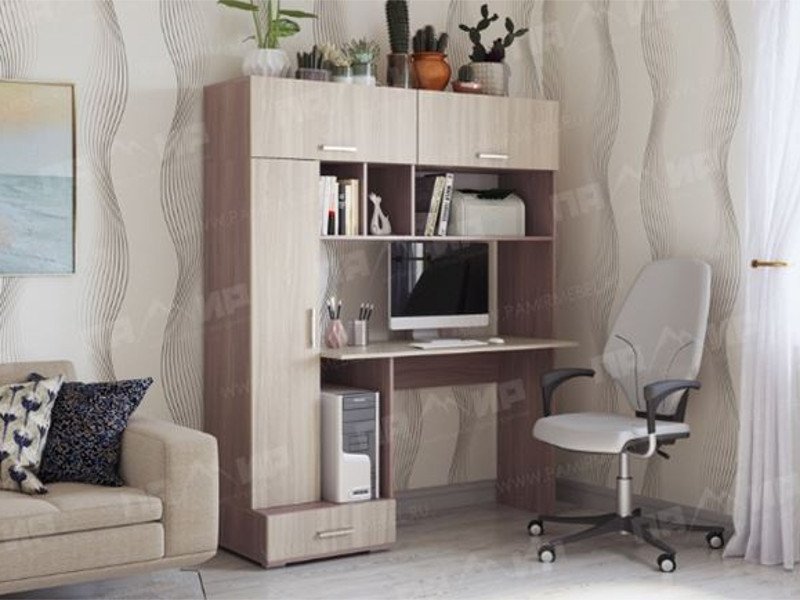 Рабочая зона стола (под монитор и клавиатуру), ш*г: 1200*570 мм, высота под монитор 430 мм;