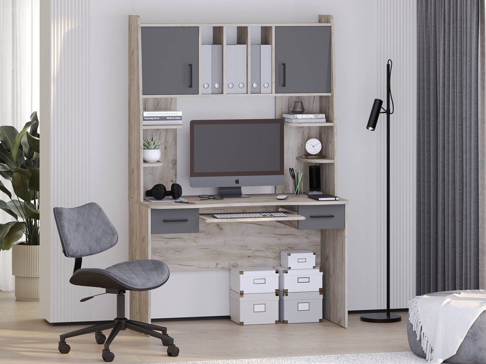 - Стол рабочий Бета 6-0604 Дуб Крафт Серый, Графит