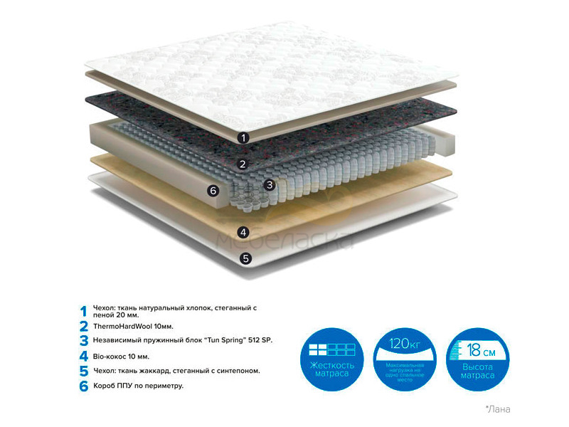 Наполнение : Блок независимых пружин + ThermoHardWool 10 мм+ усиление по периметру коробом ППУ