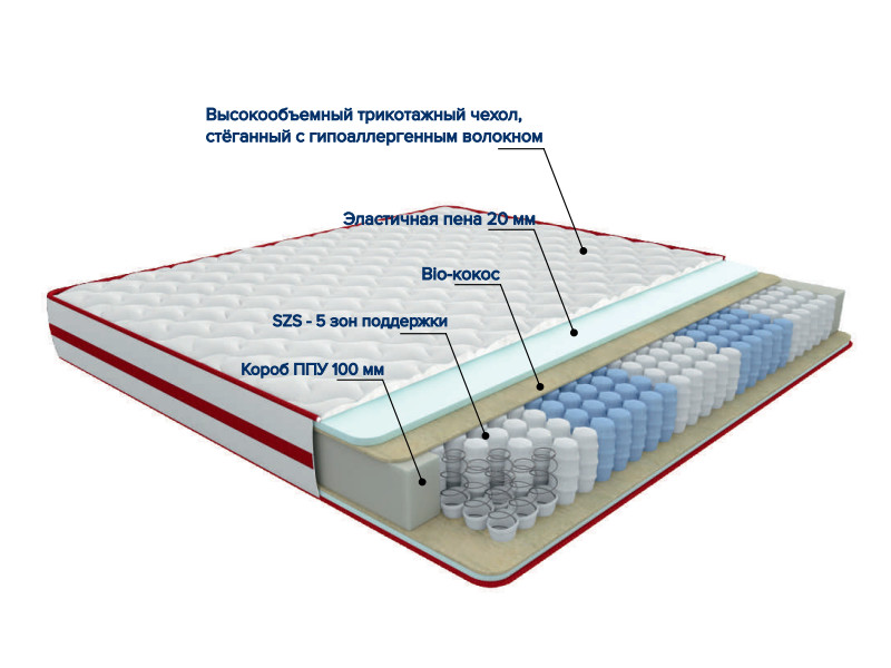 Наполнение: Пружинный блок SZS™ (Sarma Zone Spring) - 5 зон - 512 пружин на спальное место