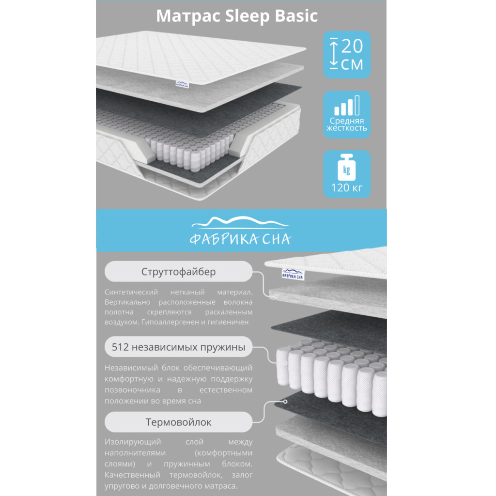 - Матрас Sleep Basic шириной 1800 мм