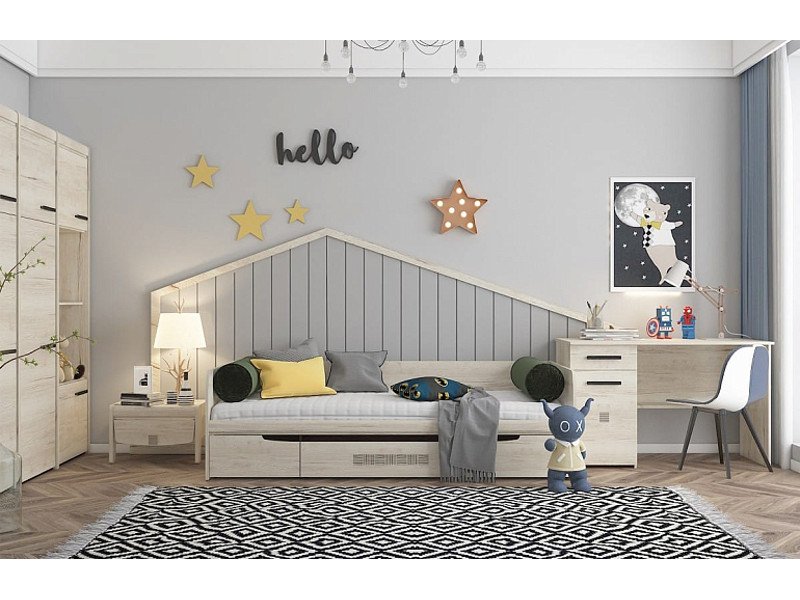 Цена за комплект: Тумбочка прикроватная, Кровать с ящиками, Стол письменный,. М-2 Шкаф 1-но дверный (2 шт),М-3 Пенал узкий