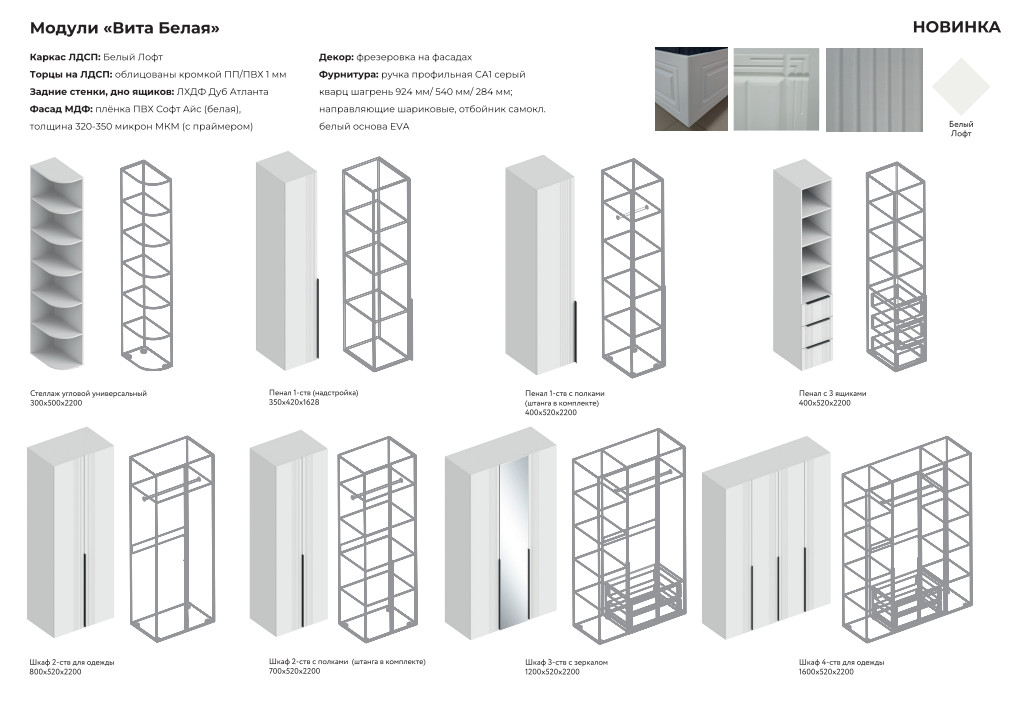 - Фурнитура: Ручка профильная СА1, направляющие шариковые