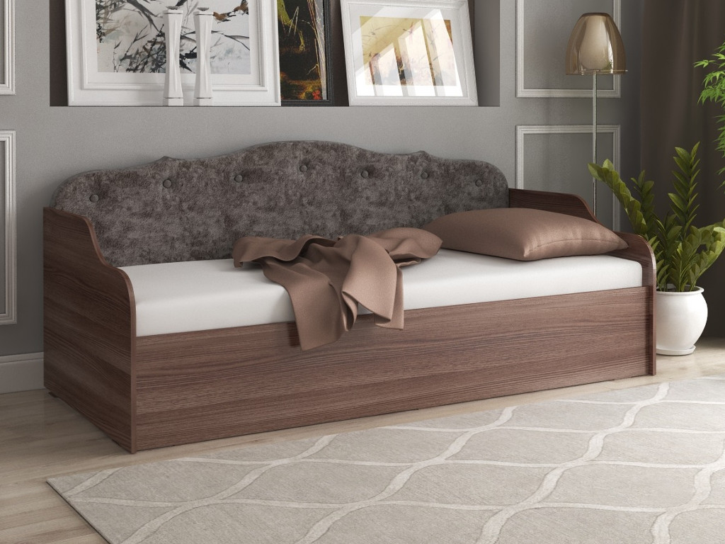 - Диван-кровать Юниор Тип 3 с подъемным механизмом мягкая спинка темная
