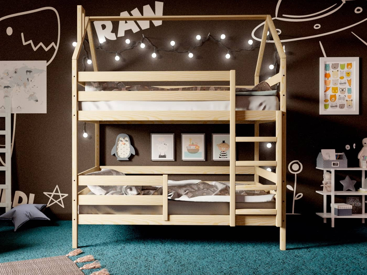 - Двухъярусная кровать-домик без покраски 80х160 см