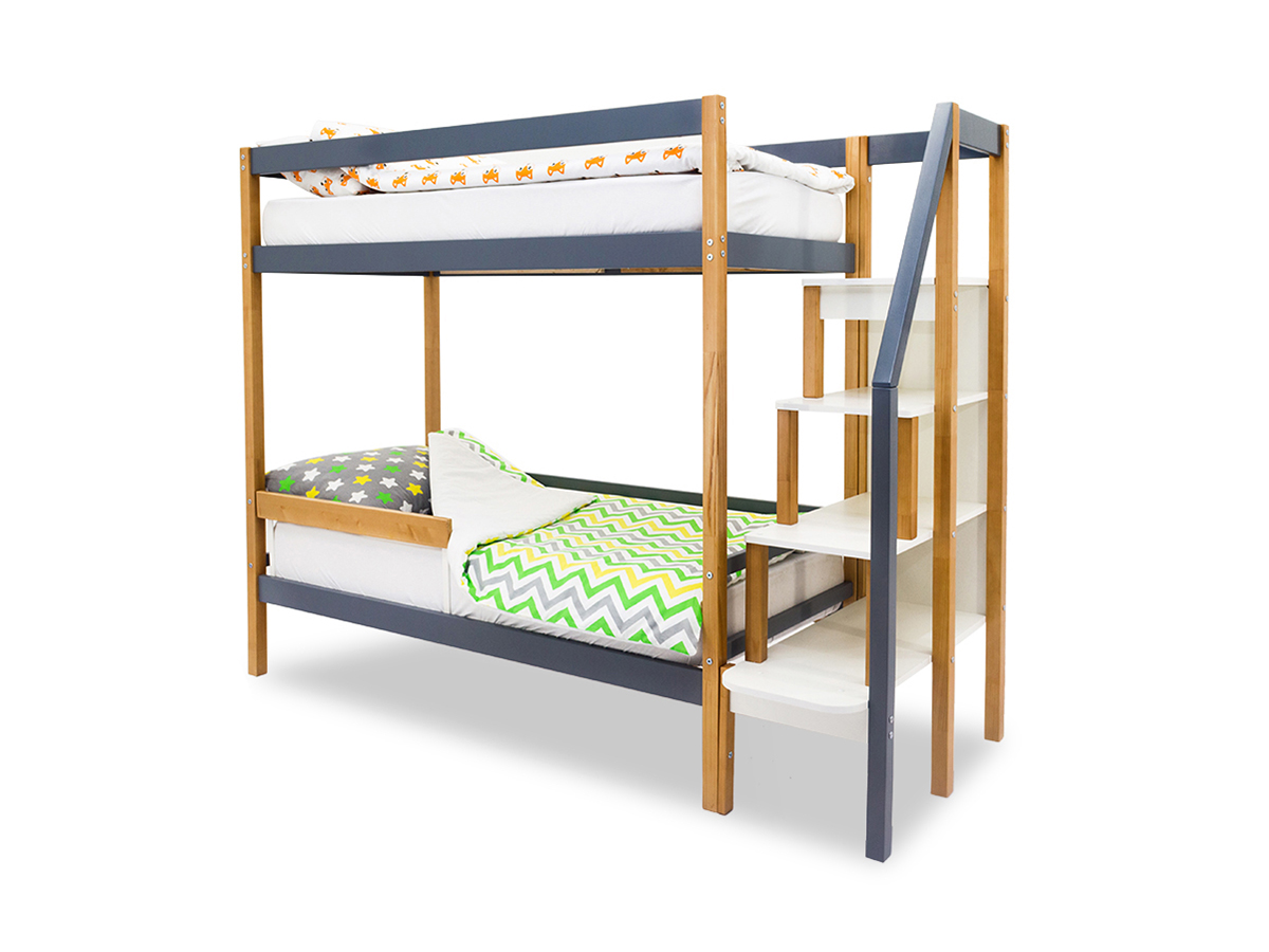 Двухъярусная кровать Svogen с бортиком дерево-графит