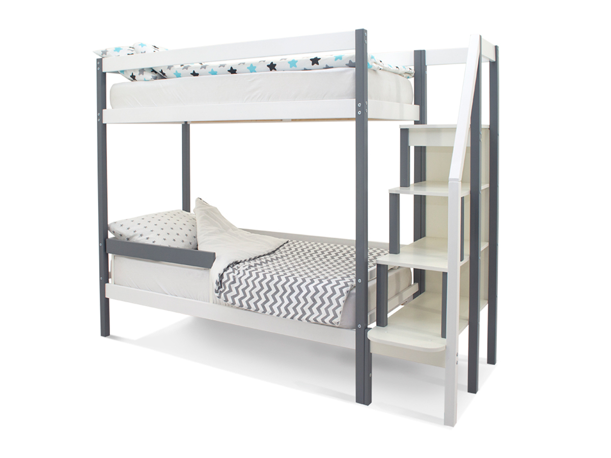 Двухъярусная кровать Svogen с бортиком графит-белый