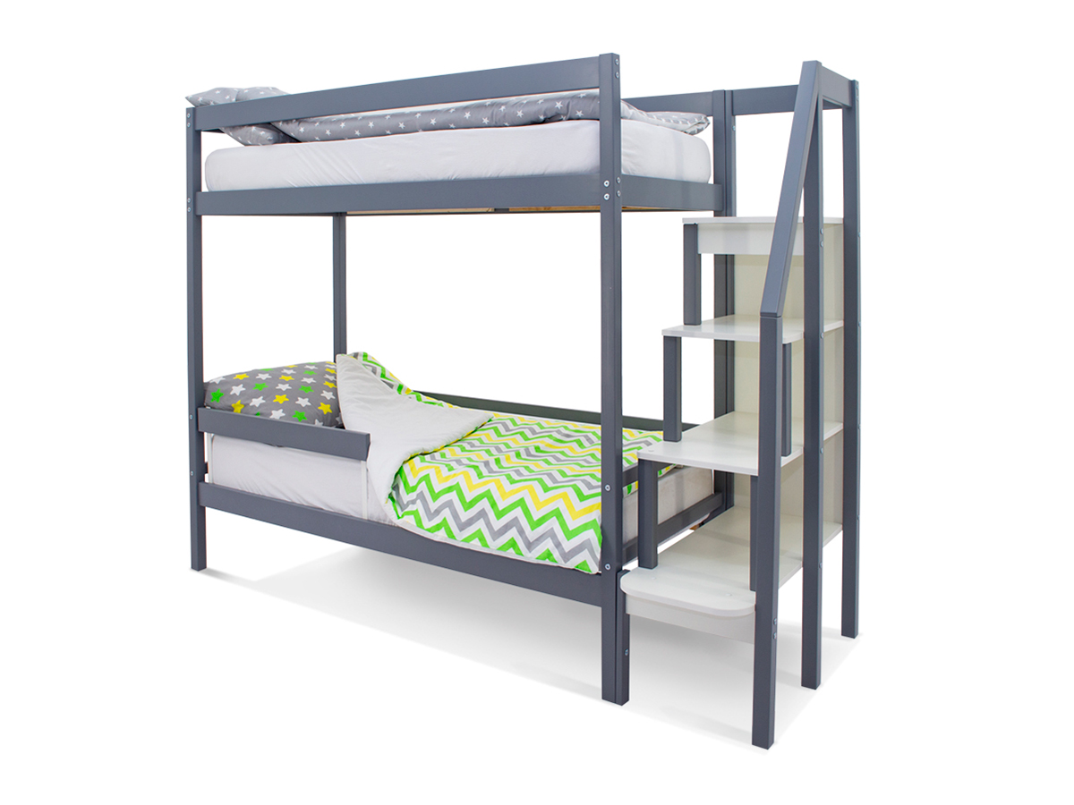 Двухъярусная кровать Svogen с бортиком графит