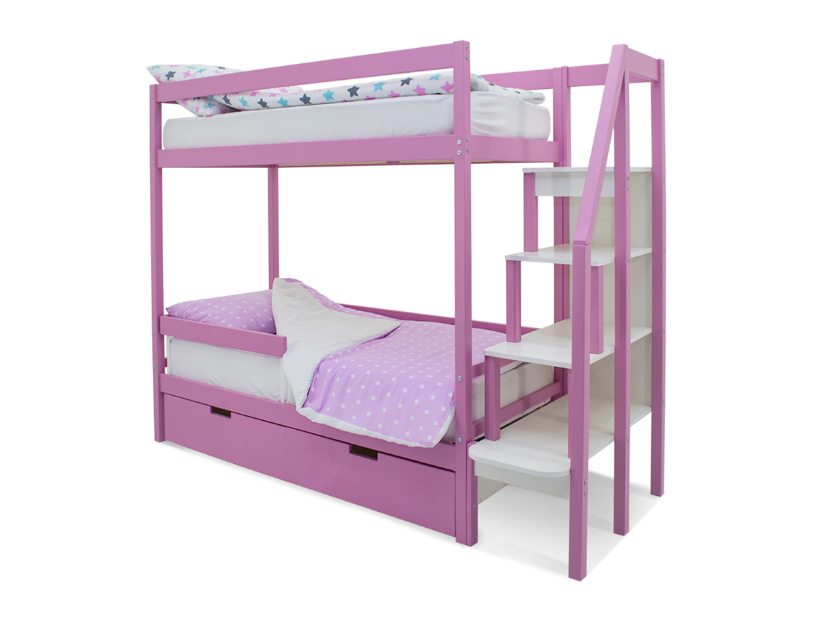 - Двухъярусная кровать Svogen с ящиками и бортиком лаванда