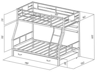 ширина нижнего спального места 1200х1900 мм