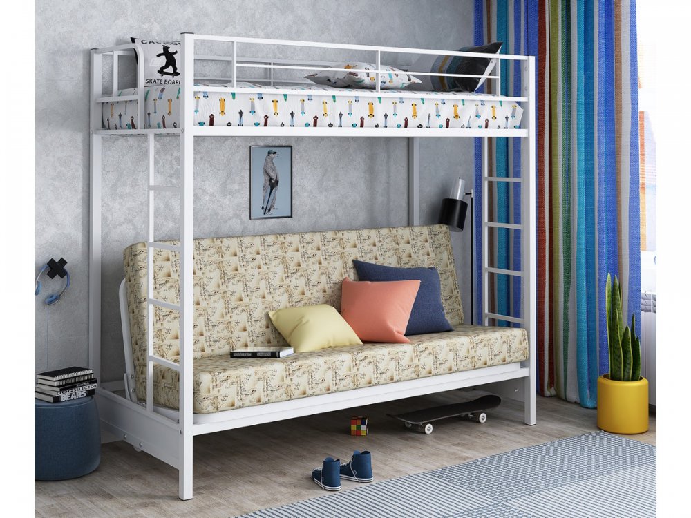 Двухъярусная кровать с диваном Мадлен белый пифагор