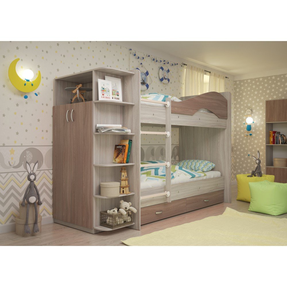 - Двухъярусная кровать со шкафом Мая щиты ясень