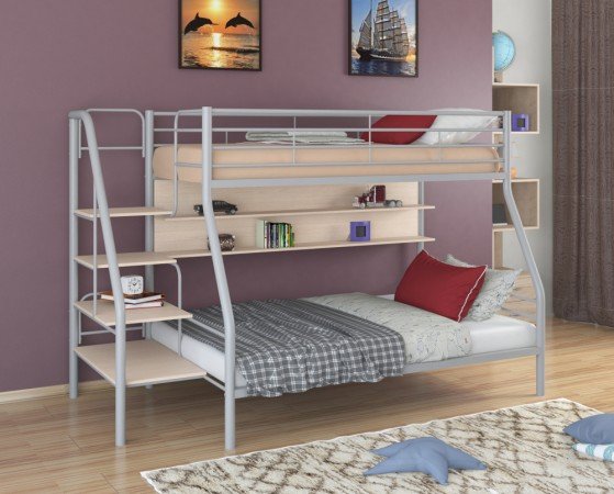 - Двухъярусная кровать Толедо 1П серый молочный