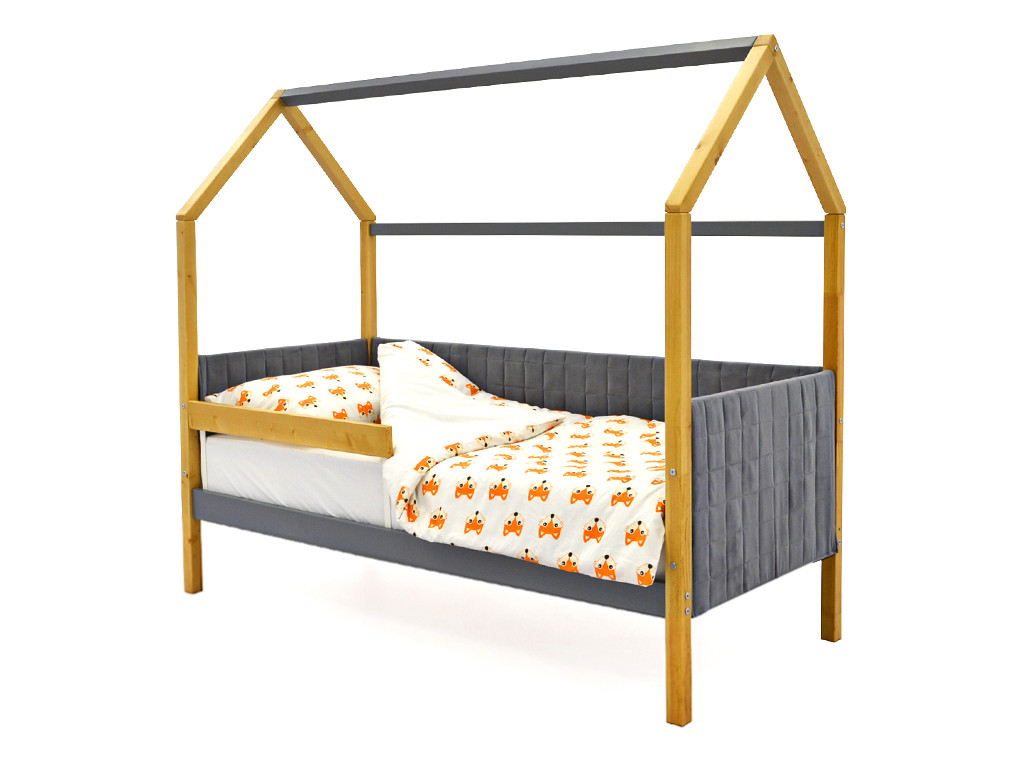 Кровать-домик мягкий Svogen с бортиком дерево-графит