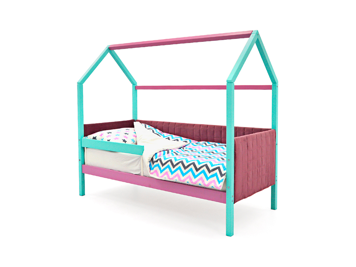 Кровать-домик мягкий Svogen с бортиком мятный-лаванда