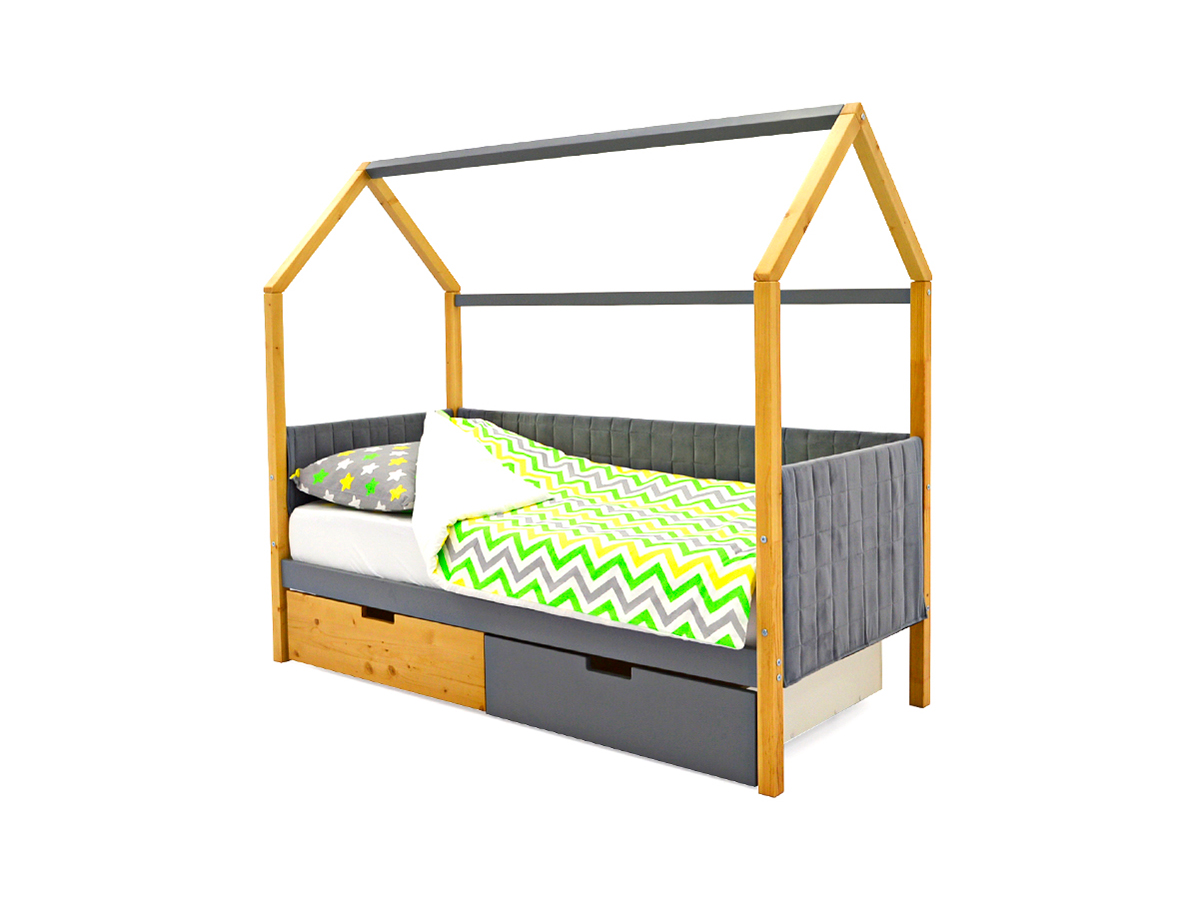 - Кровать-домик мягкий Svogen с ящиками дерево-графит