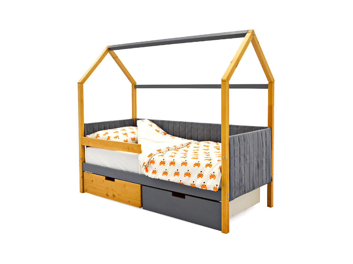 Кровать-домик мягкий Svogen с ящиками и бортиком дерево-графит