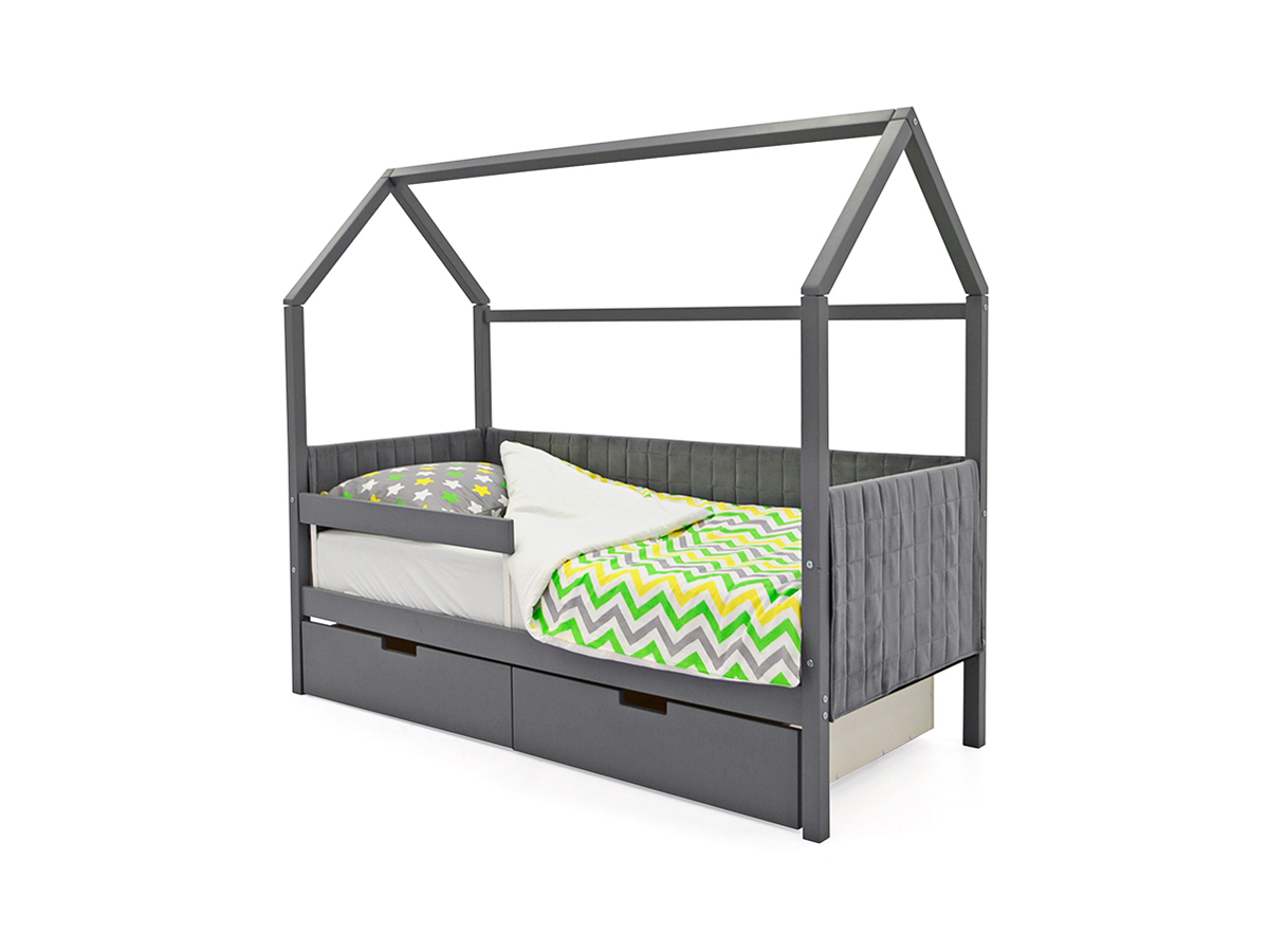- Кровать-домик мягкий Svogen с ящиками и бортиком графит