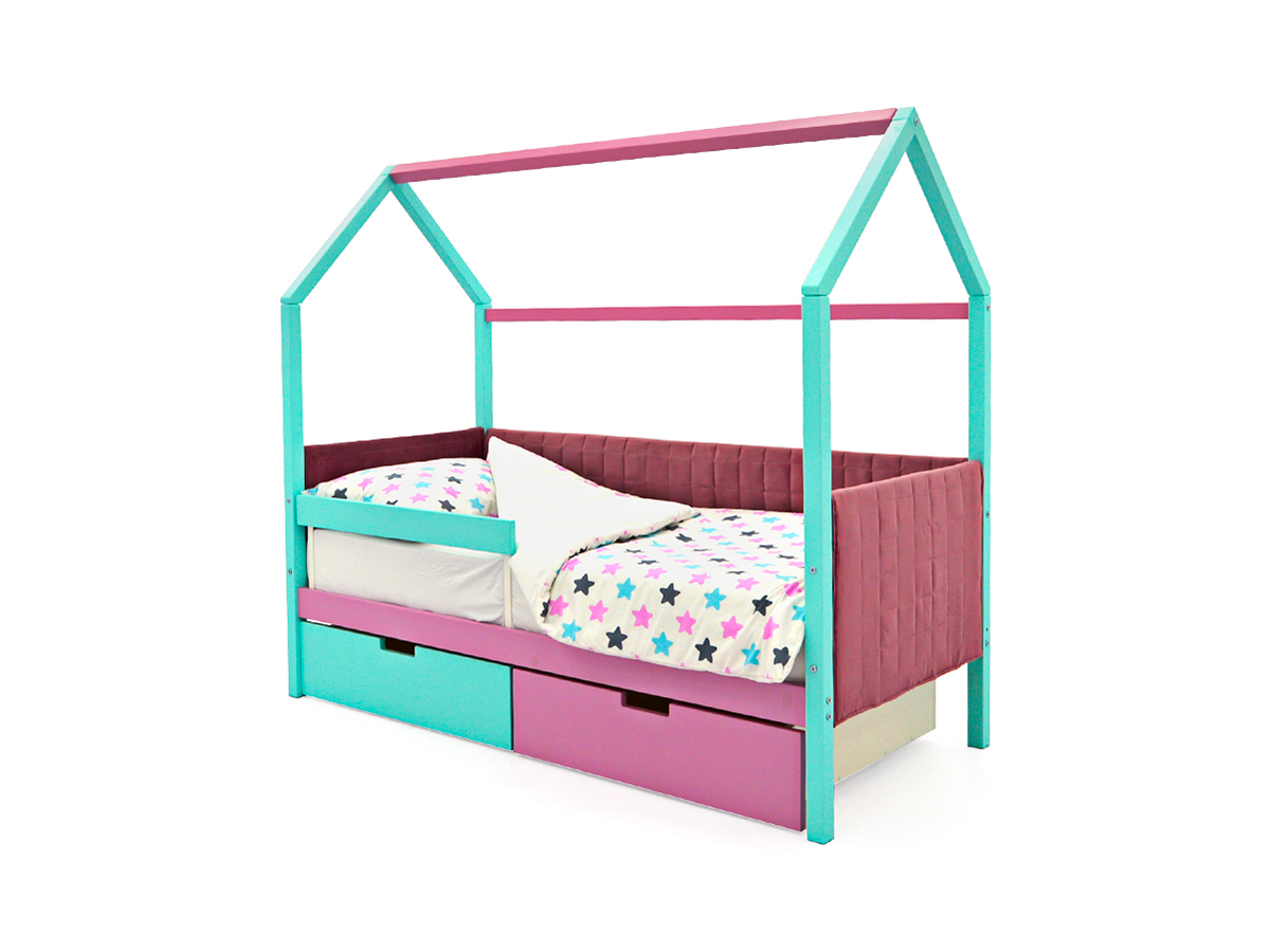 - Кровать-домик мягкий Svogen с ящиками и бортиком мятный-лаванда
