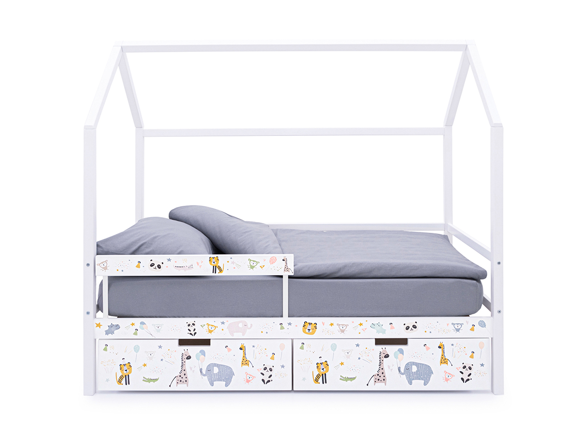 Кровать-домик Svogen с фото с ящиками и бортиком белый/зверята