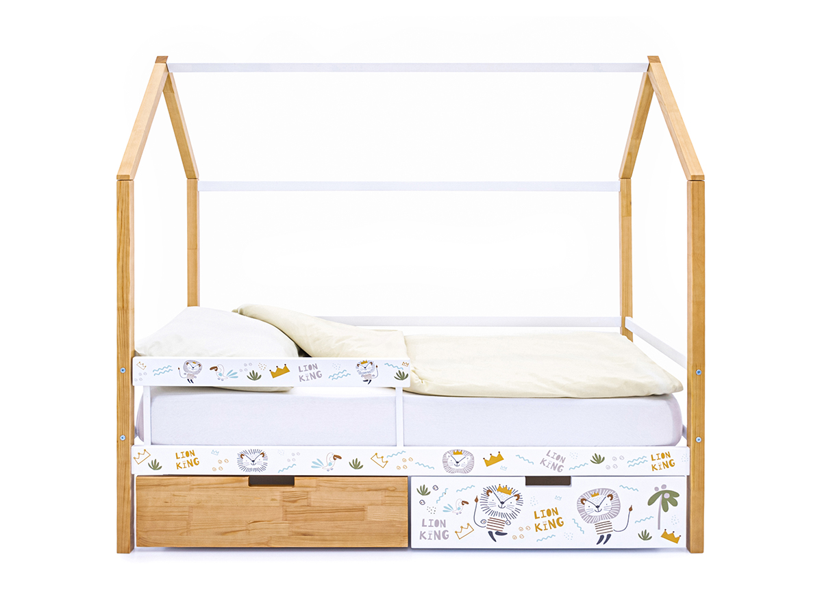 Кровать-домик Svogen с фото с ящиками и бортиком дерево/львята