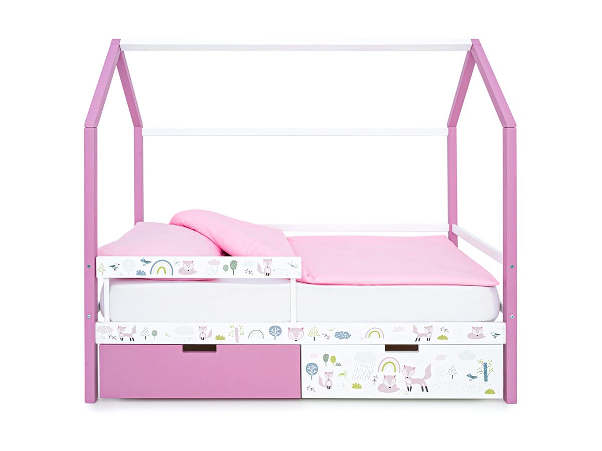 Кровать-домик Svogen с фото с ящиками и бортиком лаванда/лисята