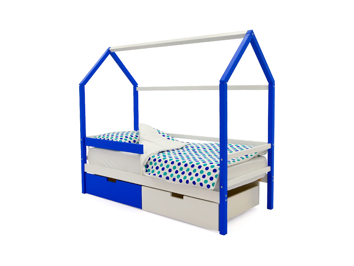 - Кровать-домик Svogen с ящиками и бортиком сине-белый