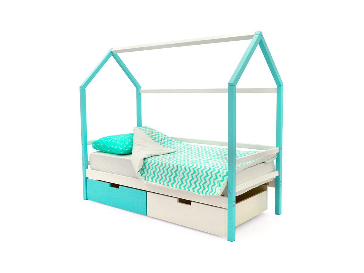 - Кровать-домик Svogen с ящиками мятно-белый