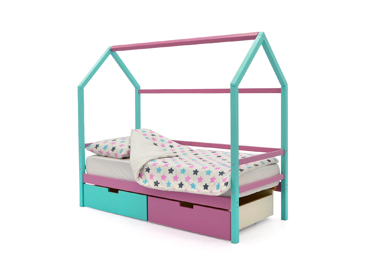 - Кровать-домик Svogen с ящиками мятный-лаванда