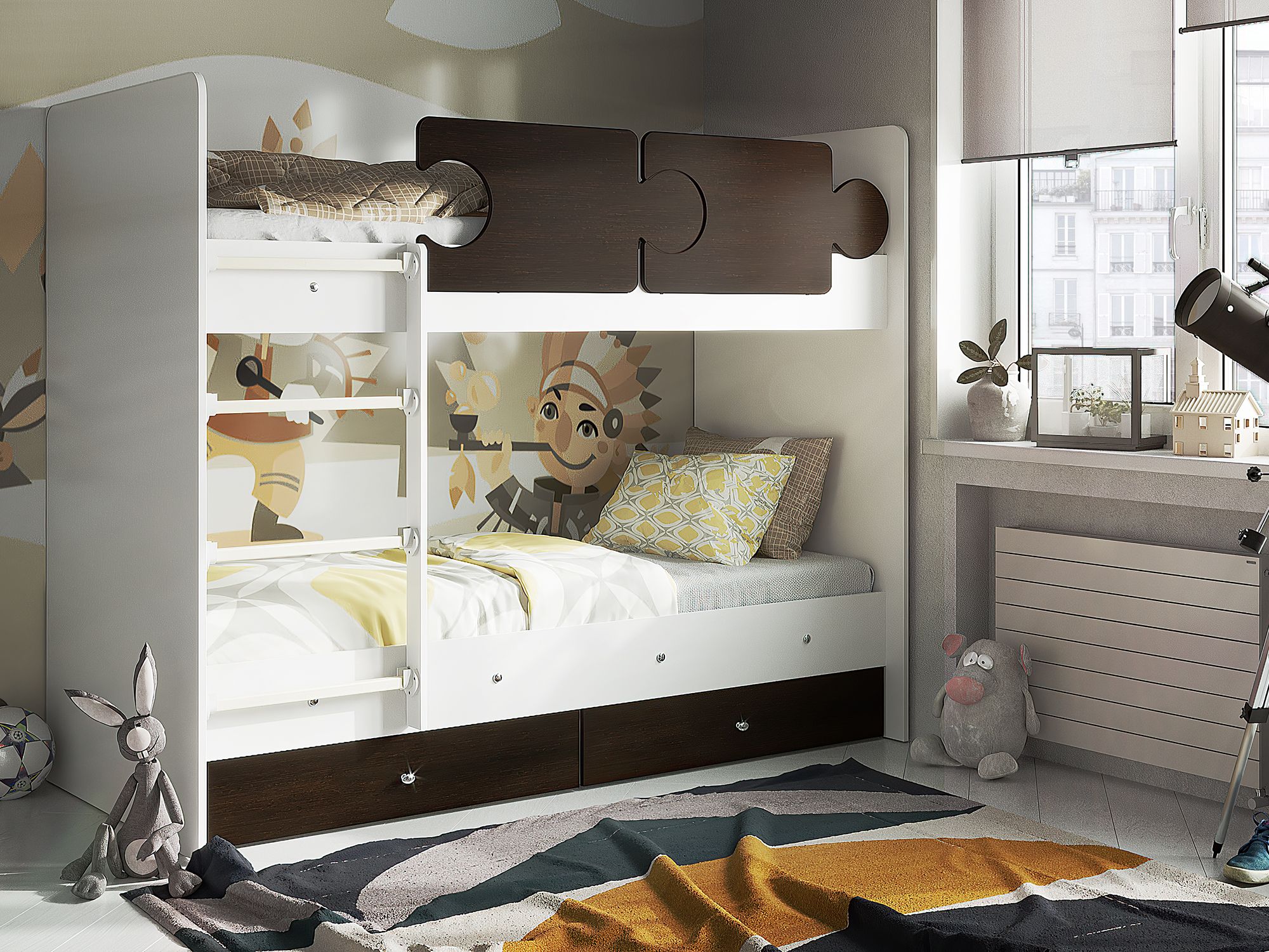 - Кровать двухъярусная Тетрис латы с бортиками белый-венге