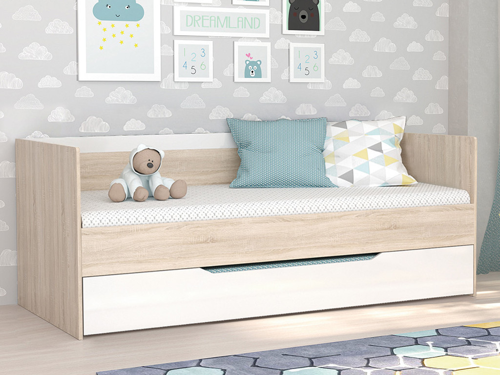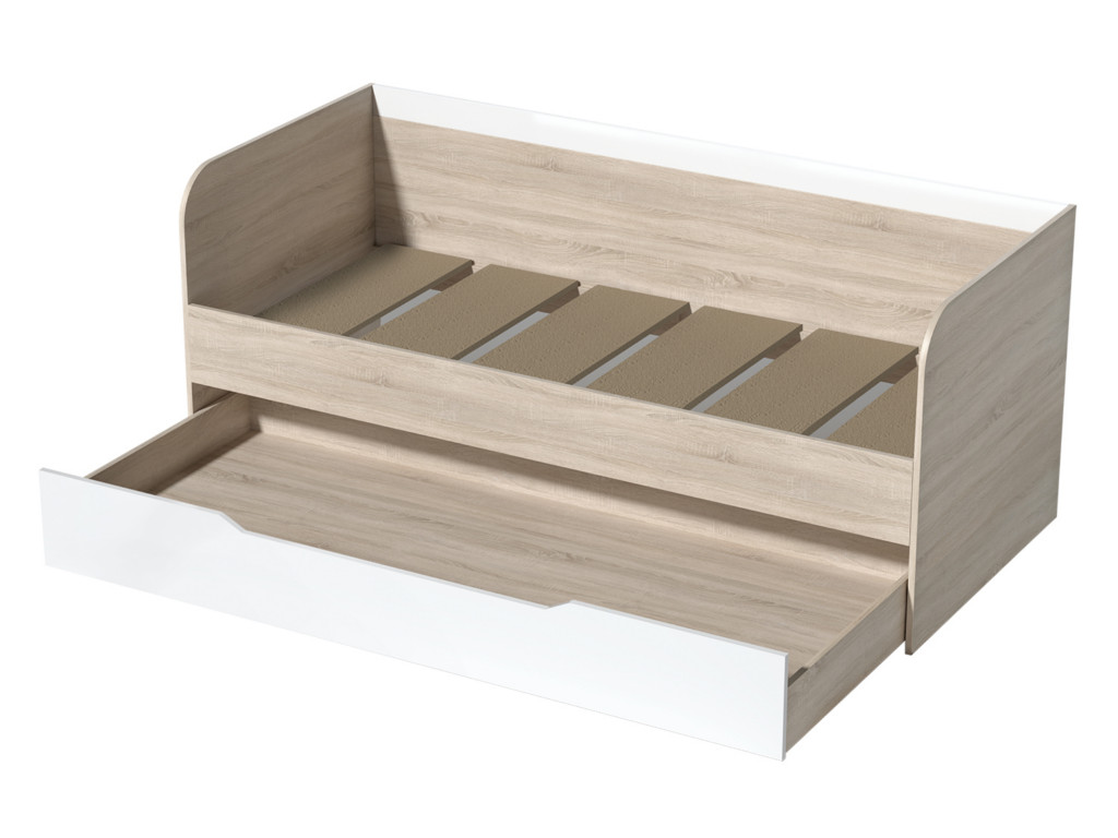 - Кровать с большим выдвижным ящиком с возможностью использования как в целях хранения вещей, так и в качестве дополнительного спального места.