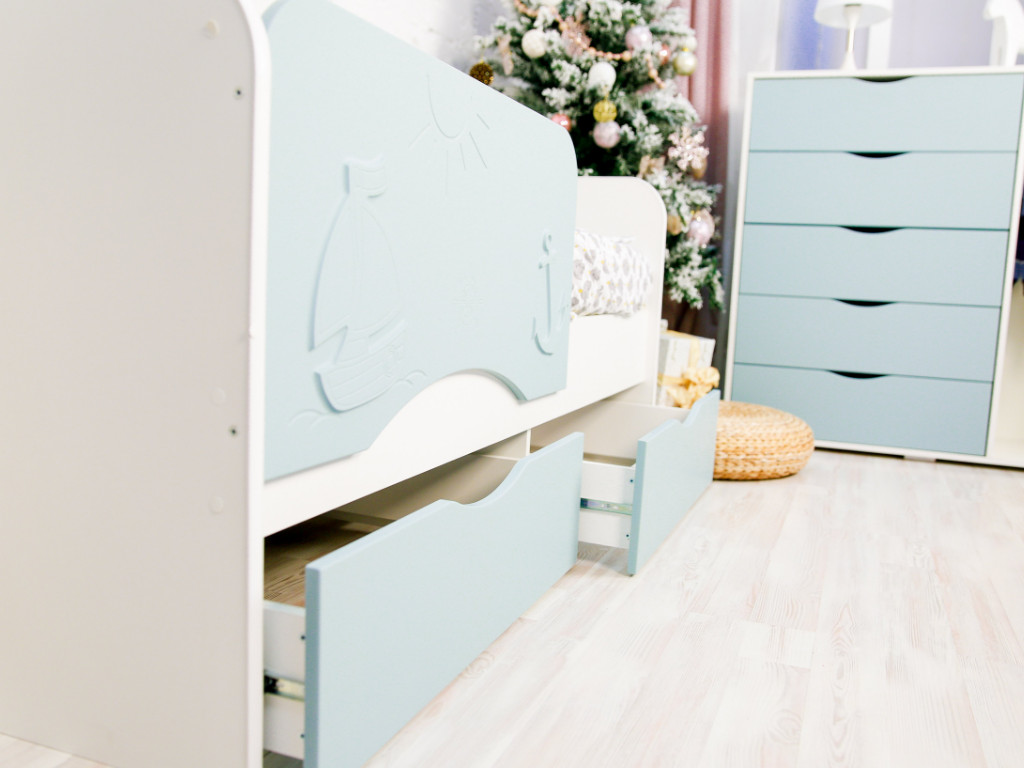- Кровать Кораблик белый/голубой софт