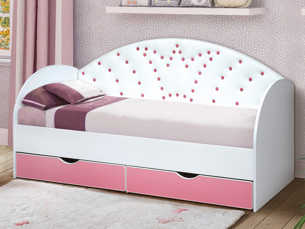 - Кровать с продольной мягкой спинкой Корона №4 800х1900 мм розовая