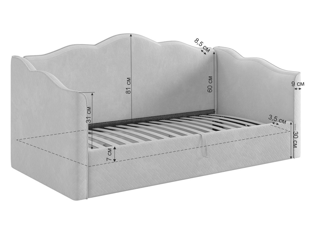 Дополнительно скомплектуйте кровать-софу матрацем 90х200см и наматрасником в цвет обивки.