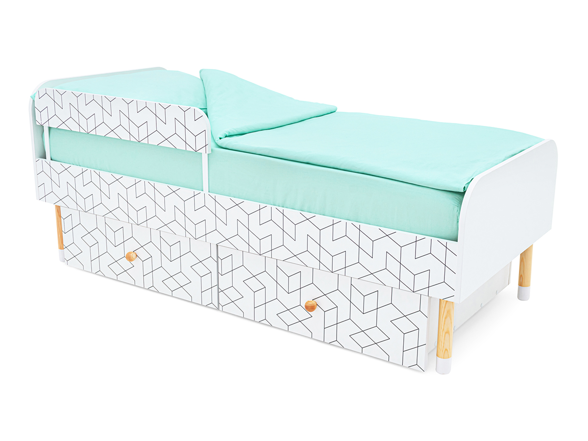 Кровать Stumpa Классика с бортиком и ящиками Кубики
