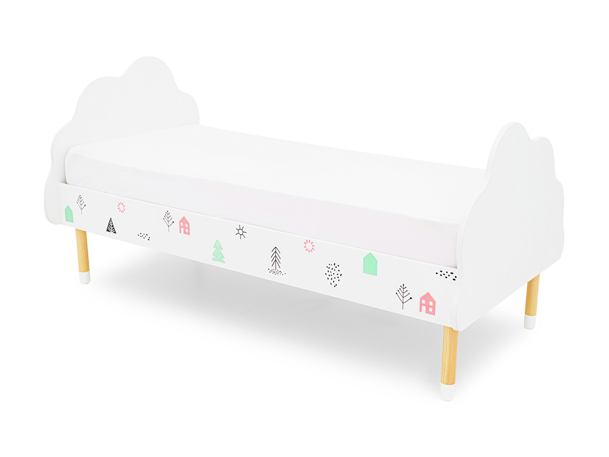 Кровать Stumpa Облако с рисунком Домики розовый, бирюзовый