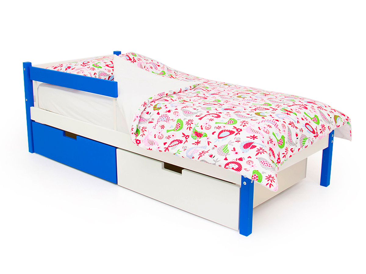 Кровать Svogen classic с ящиками и бортиком сине-белый