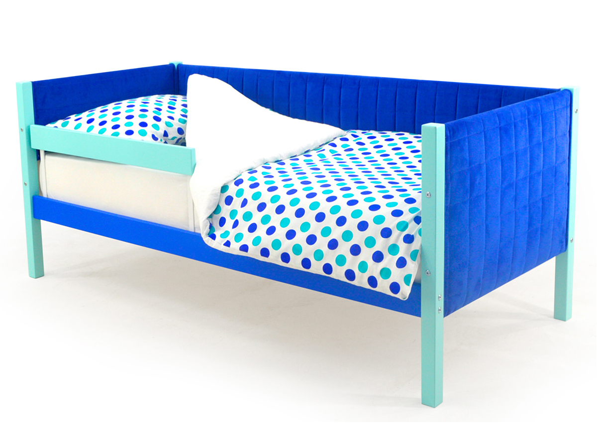 Кровать-тахта мягкая Svogen с бортиком мятно-синий