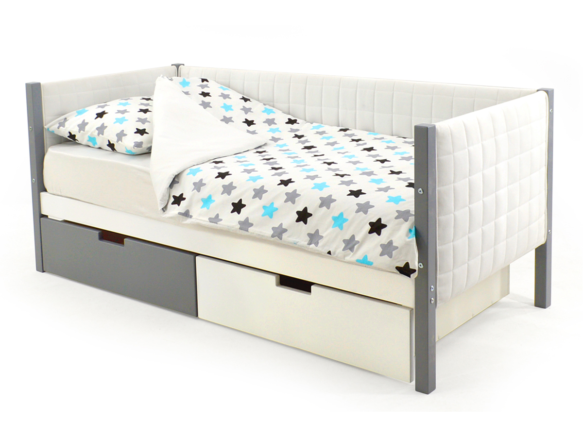 - Кровать-тахта мягкая Svogen с ящиками графит-белый