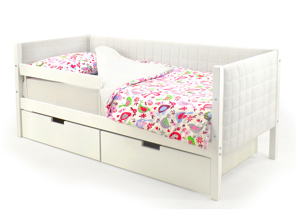 Кровать-тахта мягкая Svogen с ящиками и бортиками белый