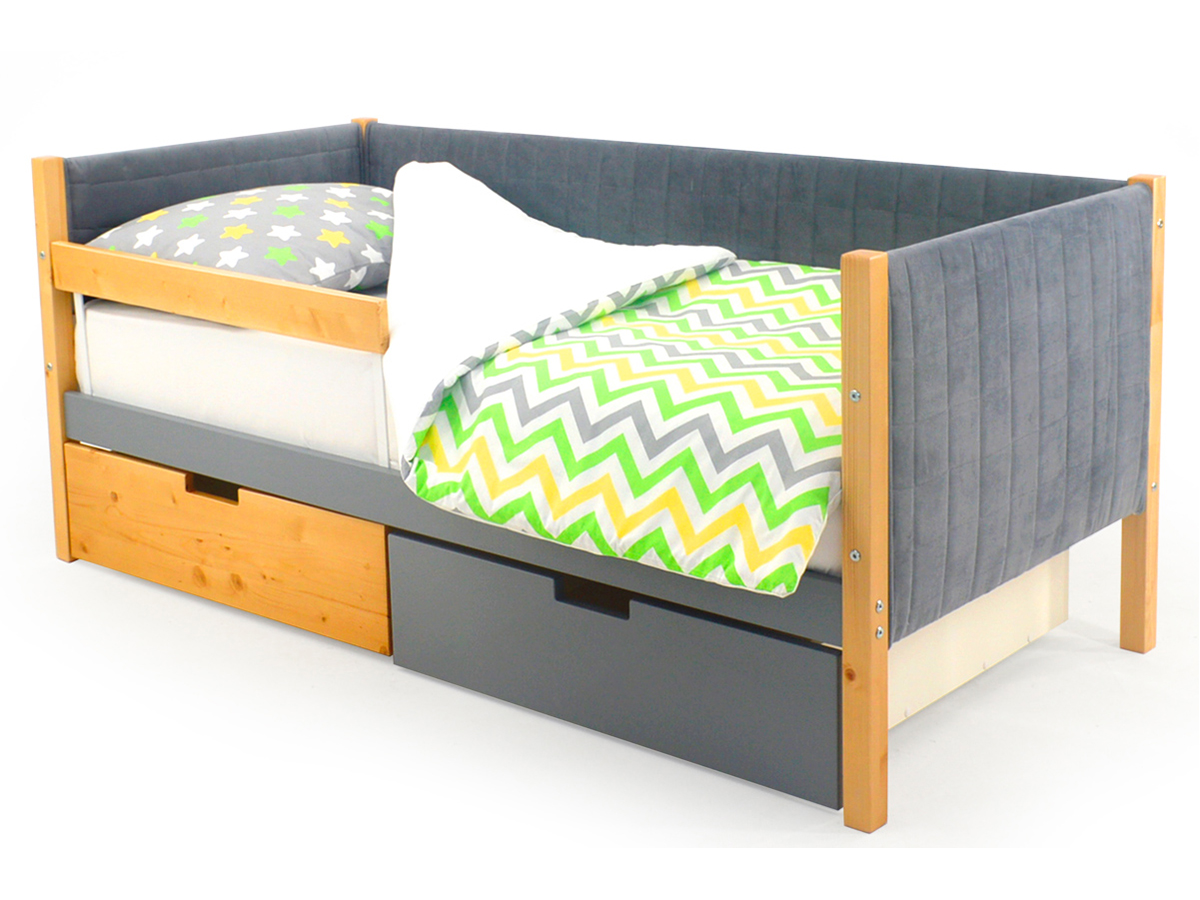 Кровать-тахта мягкая Svogen с ящиками и бортиком дерево-графит