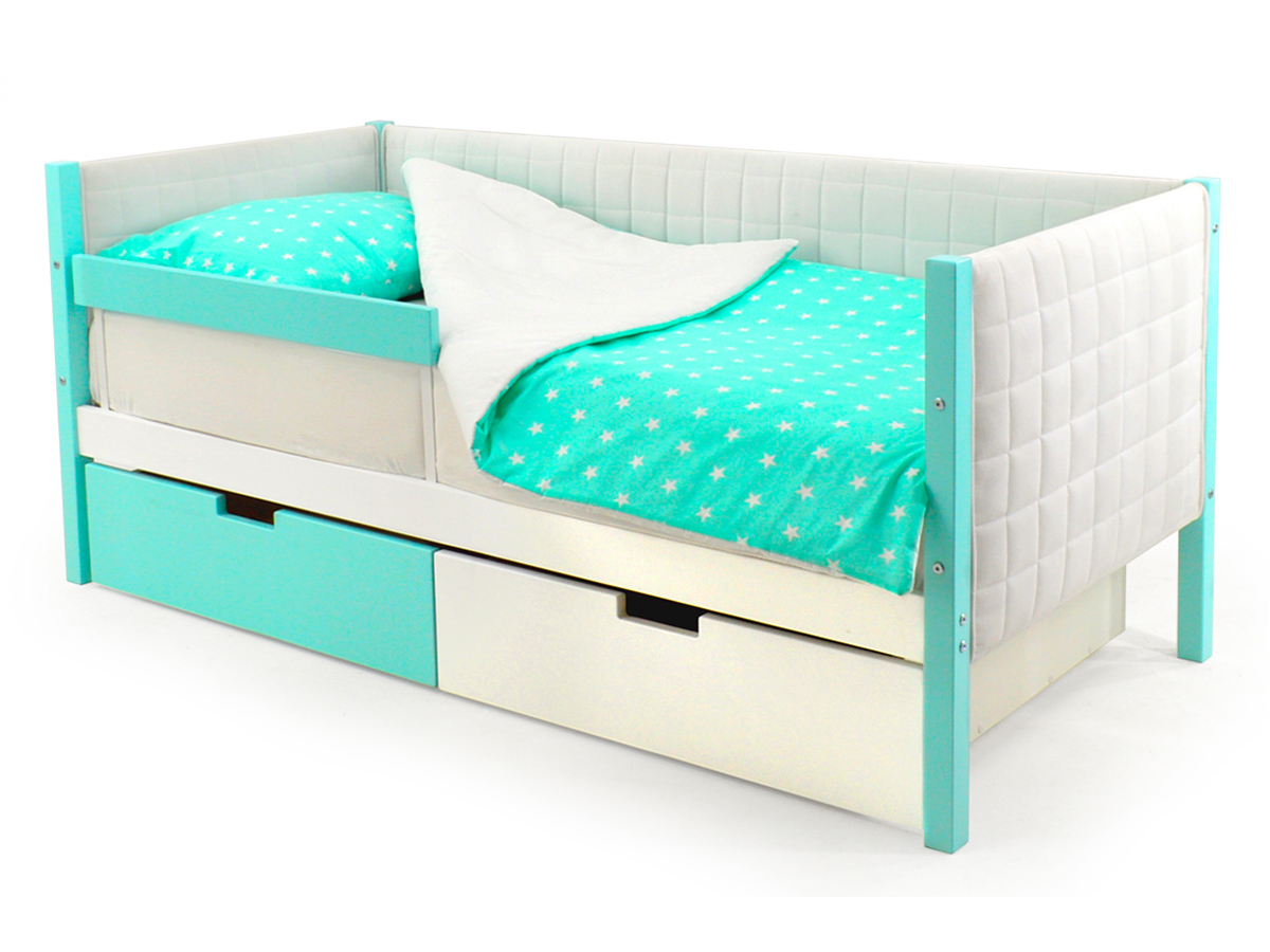 - Кровать-тахта мягкая Svogen с ящиками и бортиком мятно-белый