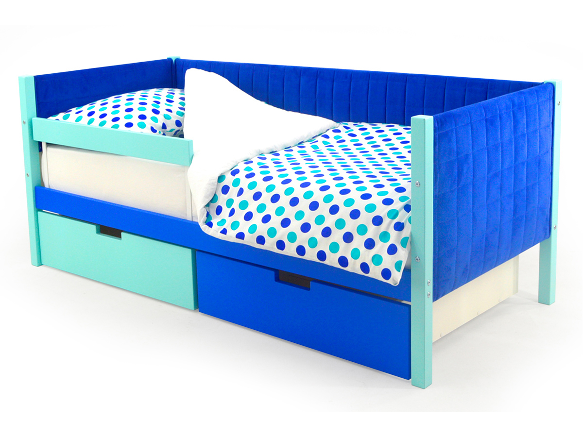 Кровать-тахта мягкая Svogen с ящиками и бортиком мятно-синий
